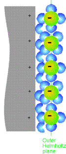 to wait for more Cu2+ ions to diffuse from the bulk solution (where they are in high concentration) to the electrode surface (where they are in low concentration) before the reaction can continue. The rate of reaction, and hence the current, becomes limited by the rate of diffusion of ions from the bulk of the solution to the electrode surface, and the current plateaus.